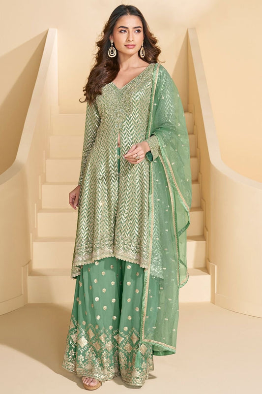 Regular price £82.10 GBPRegular priceUnit price / per£95.45 GBPSale price £82.10 GBP-13% OFFGreen Sangeet Partywear Georgette Palazzo Suit SFEDC18201R
