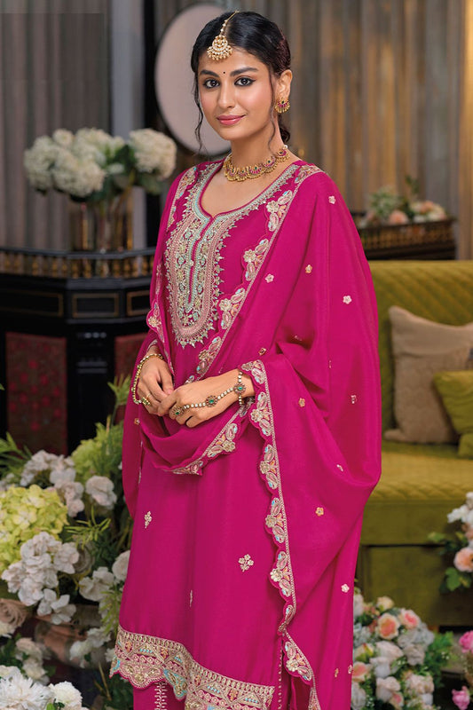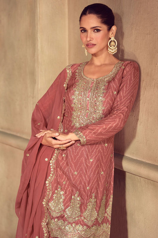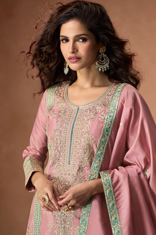 Pink Minimalist Chinnon Palazzo Suit With Zari Embroidery Work SFYS156101R