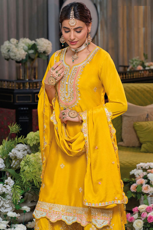 Regular price £112.52 GBPRegular priceUnit price / per£132.52 GBPSale price £112.52 GBP-15% OFFYellow Haldi Wedding Sangeet Palazzo Suit SFEDC17302R