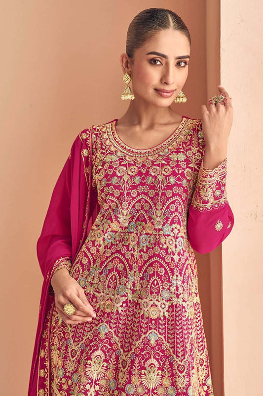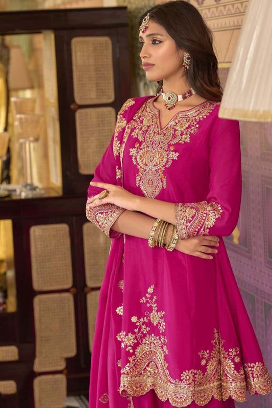 Regular price £166.06 GBPRegular priceUnit price / per£176.66 GBPSale price £166.06 GBP-6% OFFRani Pink Georgette Palazzo Suit For Wedding Sangeet SFSMT50501R