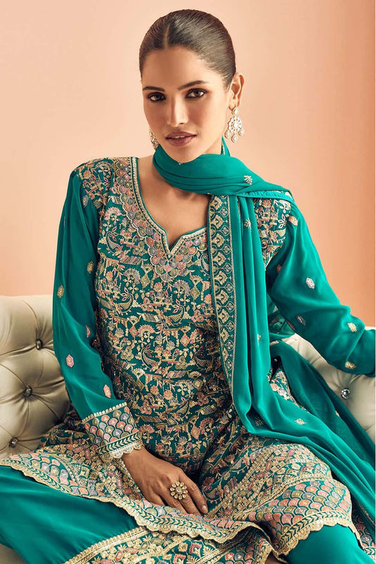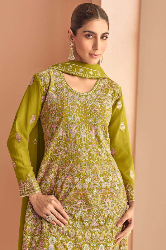Regular price From £136.12 GBPRegular priceUnit price / per£188.50 GBPSale price From £136.12 GBP-27% OFFGreen Georgette Palazzo Suit For Wedding SangeetSFSMT50503R