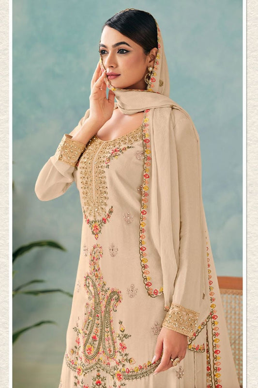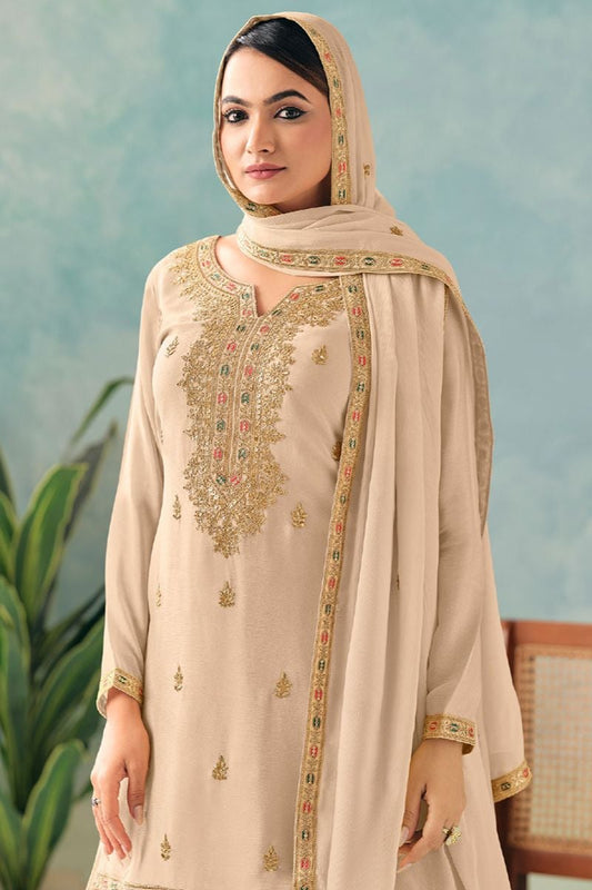 Regular price £117.35 GBPRegular priceUnit price / per£127.35 GBPSale price £117.35 GBP-7% OFFBeige Casual Chinnon Designer Palazzo Kameez SFYS154801R