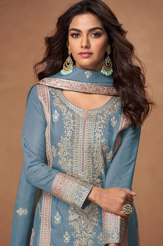 Regular price £89.42 GBPRegular priceUnit price / per£105.15 GBPSale price £89.42 GBP-14% OFFGrey Sangeet Partywear Georgette Palazzo Suit SFEDC18202R