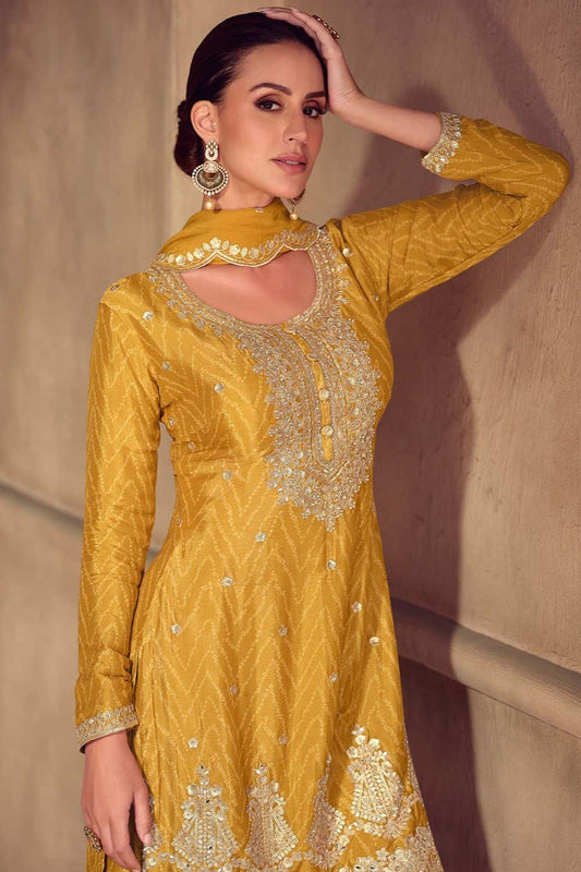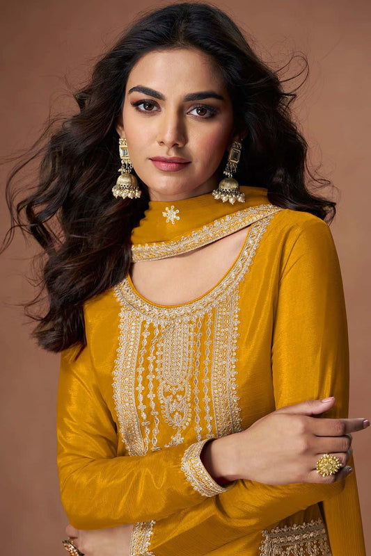 Regular price £155.16 GBPRegular priceUnit price / per£168.16 GBPSale price £155.16 GBP-7% OFFYellow Minimalist Chinnon Palazzo Suit With Zari Embroidery Work SFYS156102R