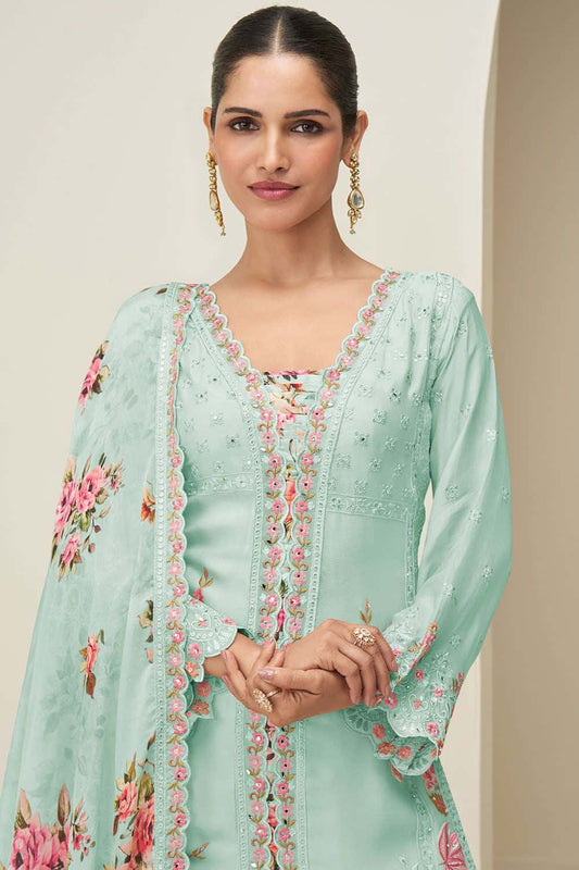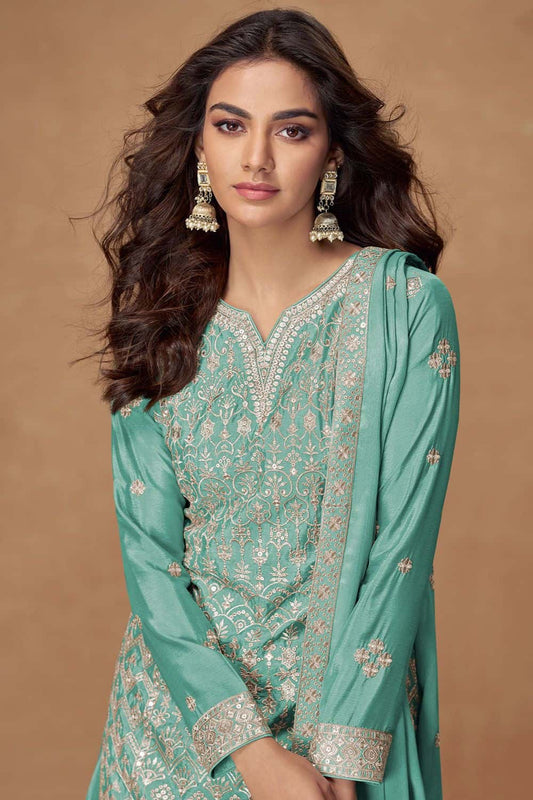 Regular price From £128.39 GBPRegular priceUnit price / perSale price From £128.39 GBPTurquoise Silk Multi Thread Embroidery Palazzo SuitSFSMT50702R