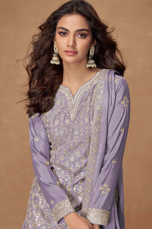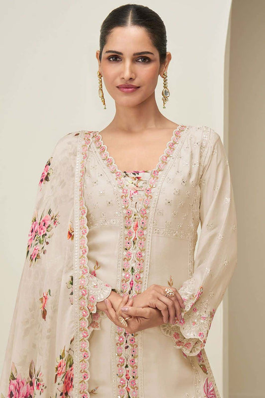 Ivory Silk Multi Thread Embroidery Palazzo Suit SFSMT50701R