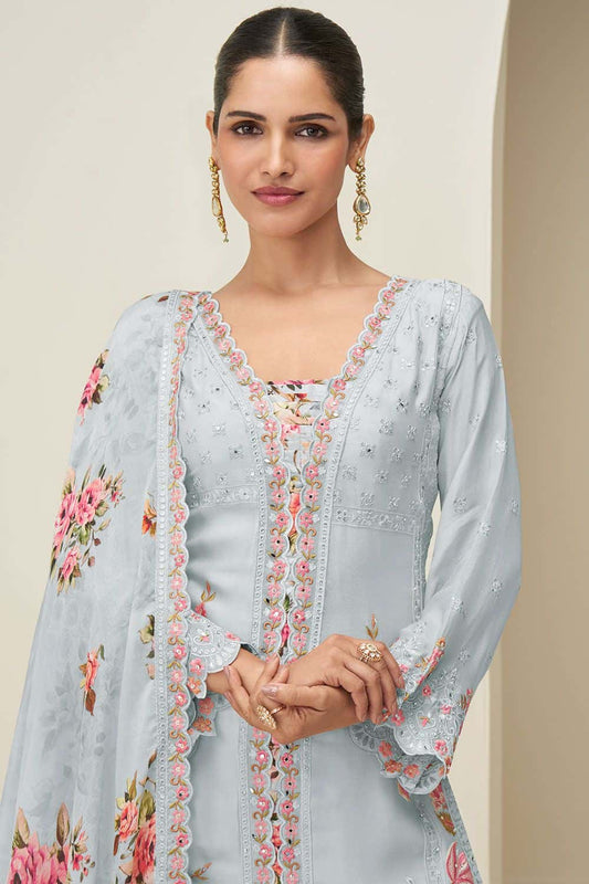 Regular price From £128.39 GBPRegular priceUnit price / perSale price From £128.39 GBPGrey Silk Multi Thread Embroidery Palazzo Suit SFSMT50704R