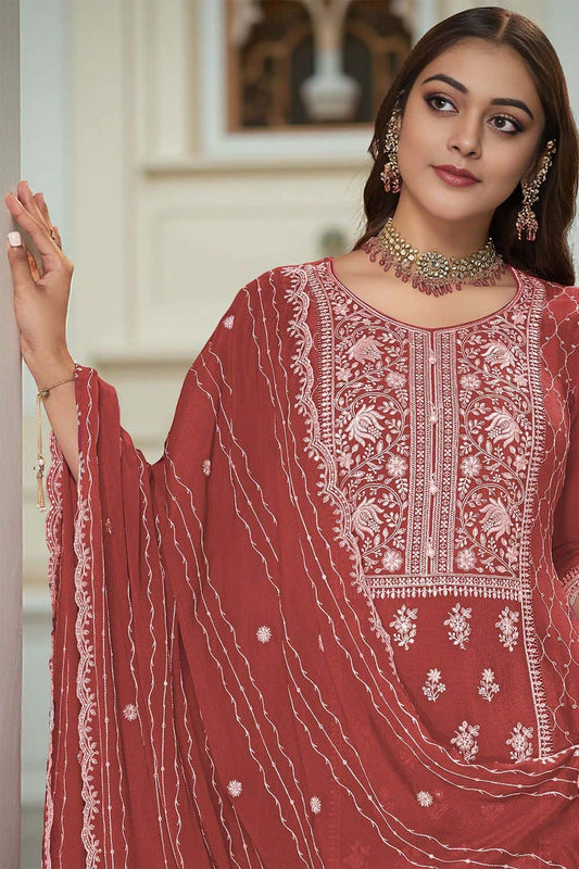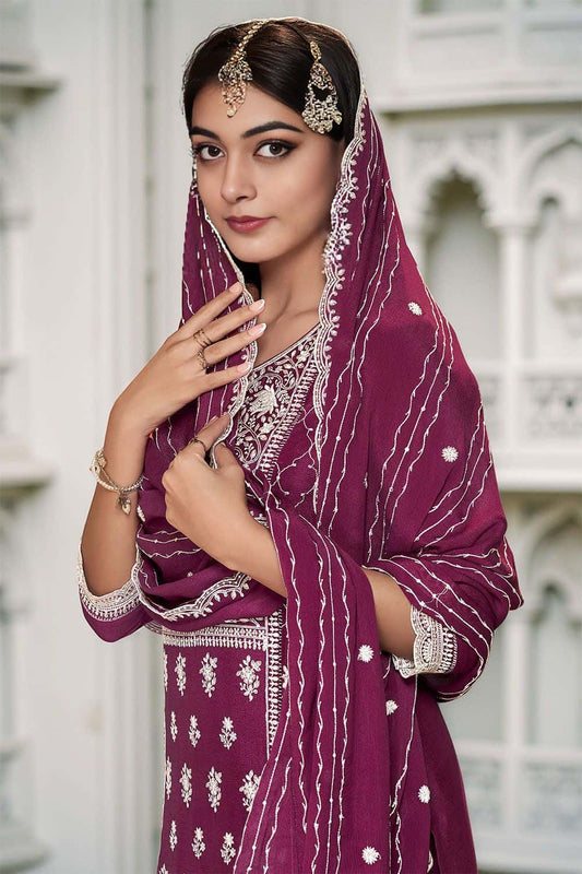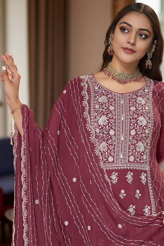 Regular price £130.43 GBPRegular priceUnit price / per£149.93 GBPSale price £130.43 GBP-13% OFFMaroon Chinnon Sangeet Ceremonial Palazzo Suit SFANB72201R