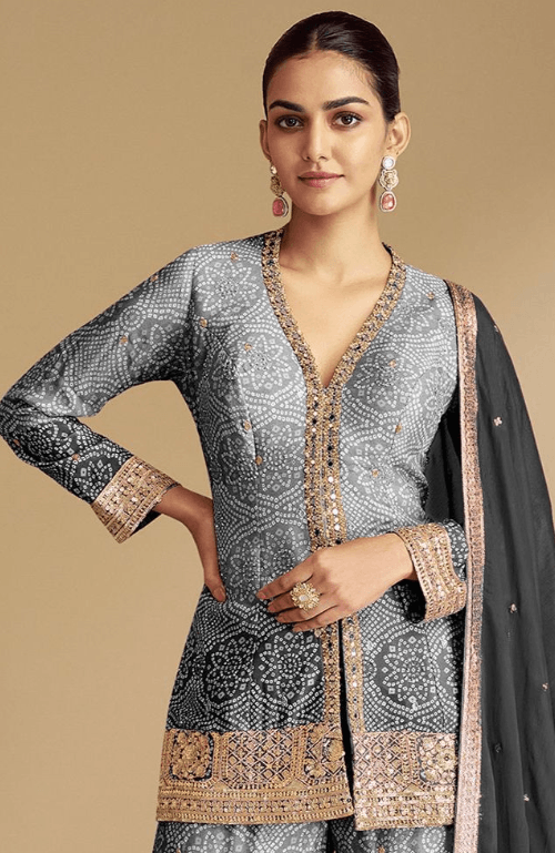 Regular price £143.98 GBPRegular priceUnit price / per£181.35 GBPSale price £143.98 GBP-20% OFFBlack Grey Sangeet Chinnon Sharara Palazzo Suit SFABC4717R