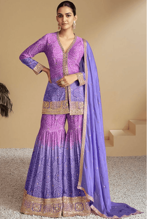 Regular price £143.98 GBPRegular priceUnit price / per£181.35 GBPSale price £143.98 GBP-20% OFFPurple Rose Sangeet Chinnon Sharara Palazzo Suit SFABC4716R