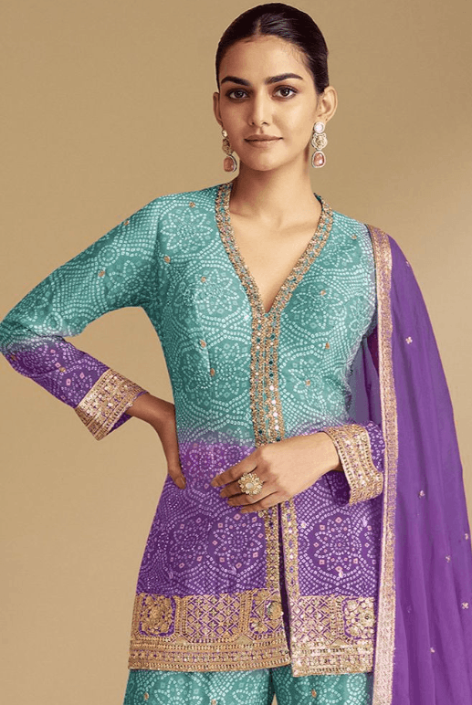 Regular price From £101.58 GBPRegular priceUnit price / per£189.53 GBPSale price From £101.58 GBP-46% OFFPurple Readymade Plus Size Palazzo Salwar Suit SFNPV57406R