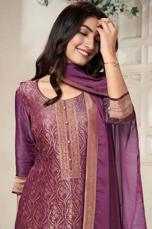 Regular price £152.98 GBPRegular priceUnit price / per£189.53 GBPSale price £152.98 GBP-19% OFFPurple Sangeet Jacquard Silk Salwar Kameez SFVNF1804R