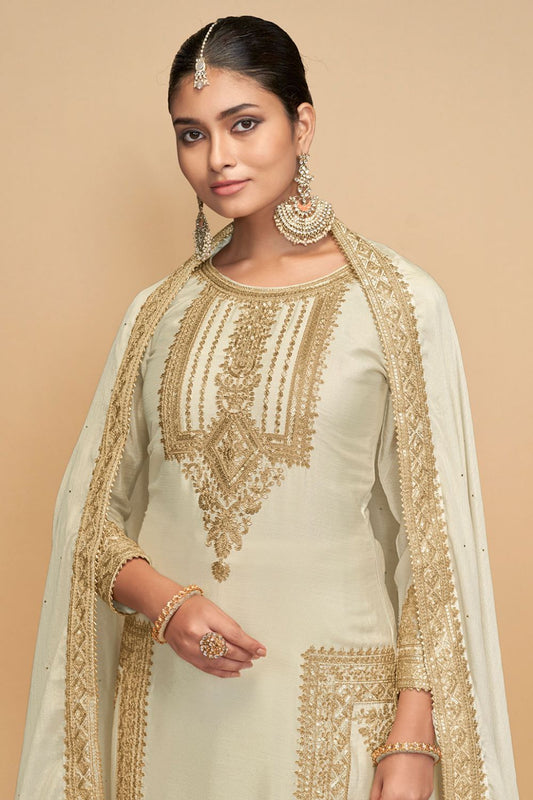 Regular price £114.43 GBPRegular priceUnit price / perSale price £114.43 GBPOff White Chinnon Embroidery Work Salwar Kameez SFSMT33902R