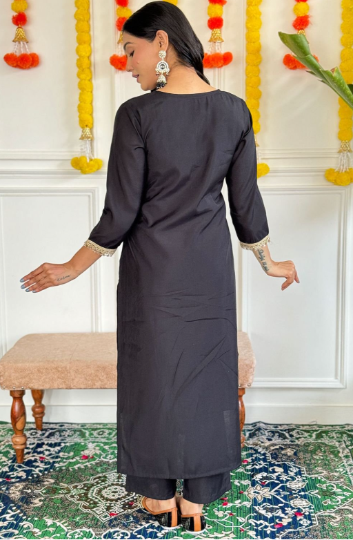 Regular price £82.10 GBPRegular priceUnit price / per£95.45 GBPSale price £82.10 GBP-13% OFFBlack Chinnon Embroidery Work Salwar Kameez SFSMT33901R