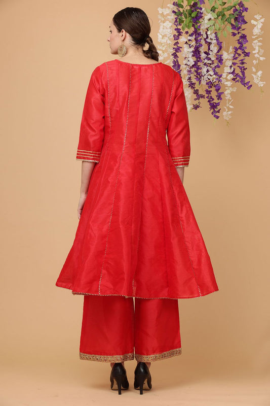 Regular price £164.02 GBPRegular priceUnit price / perSale price £164.02 GBPRed Heritage Silk Salwar Kameez With Gota Work SFJBNF1802R