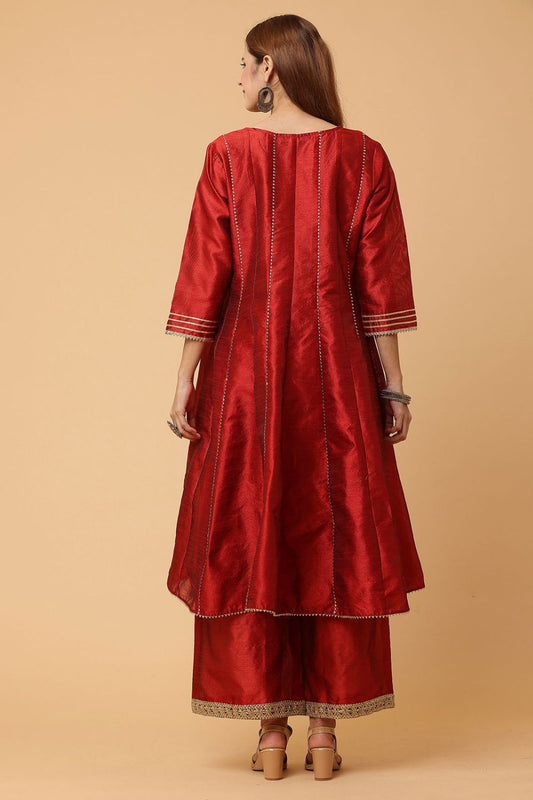 Regular price £164.02 GBPRegular priceUnit price / perSale price £164.02 GBPMaroon Heritage Silk Salwar Kameez With Gota Work SFJBNF1807R