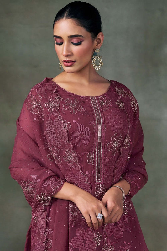 Regular price £115.15 GBPRegular priceUnit price / per£125.79 GBPSale price £115.15 GBP-8% OFFMaroon Georgette Palazzo Salwar Kameez SFDFS27904