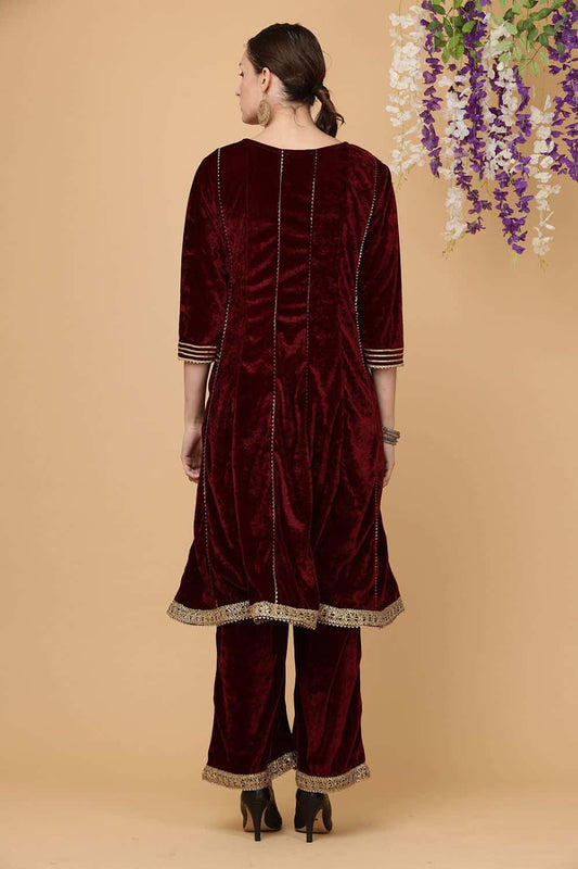 Regular price £246.70 GBPRegular priceUnit price / per£259.70 GBPSale price £246.70 GBP-5% OFFMaroon Velvet Readymade Palazzo Salwar Kameez Suit SFJBNF1812R