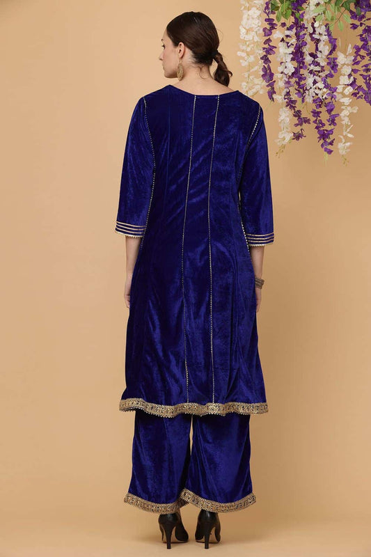 Regular price £246.70 GBPRegular priceUnit price / per£259.70 GBPSale price £246.70 GBP-5% OFFBlue Velvet Readymade Palazzo Salwar Kameez Suit SFJBNF1814R