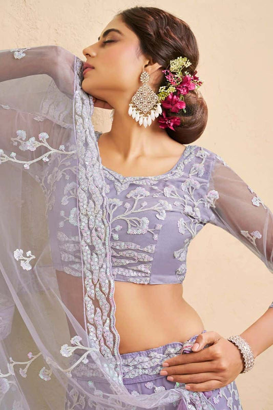 Regular price From £136.50 GBPRegular priceUnit price / per£187.07 GBPSale price From £136.50 GBP-27% OFFPurple Net Wedding Party Lehenga Choli SFROY553910