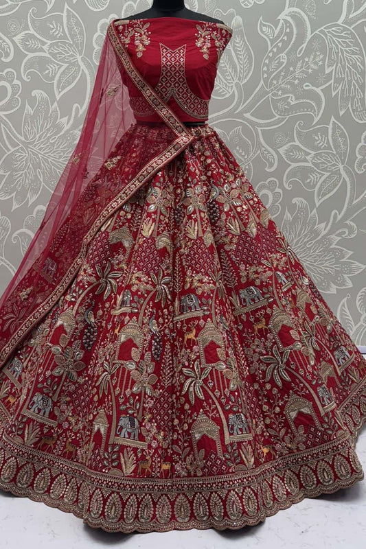 Regular price £185.51 GBPRegular priceUnit price / per£189.67 GBPSale price £185.51 GBP-2% OFFRed Bridal Silk Lehenga Choli SFANJ3131