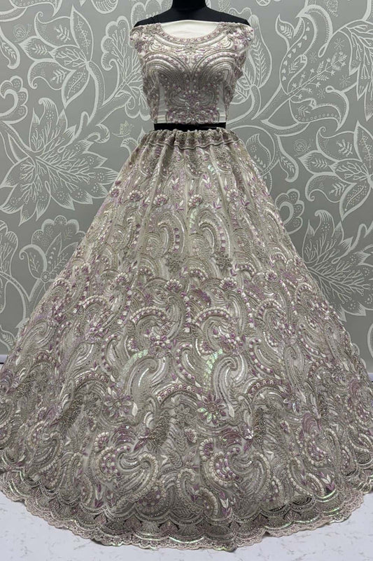 Regular price From £86.16 GBPRegular priceUnit price / per£179.27 GBPSale price From £86.16 GBP-51% OFFPurple Luminous Net Wedding Reception Lehenga Choli SFANJ3236