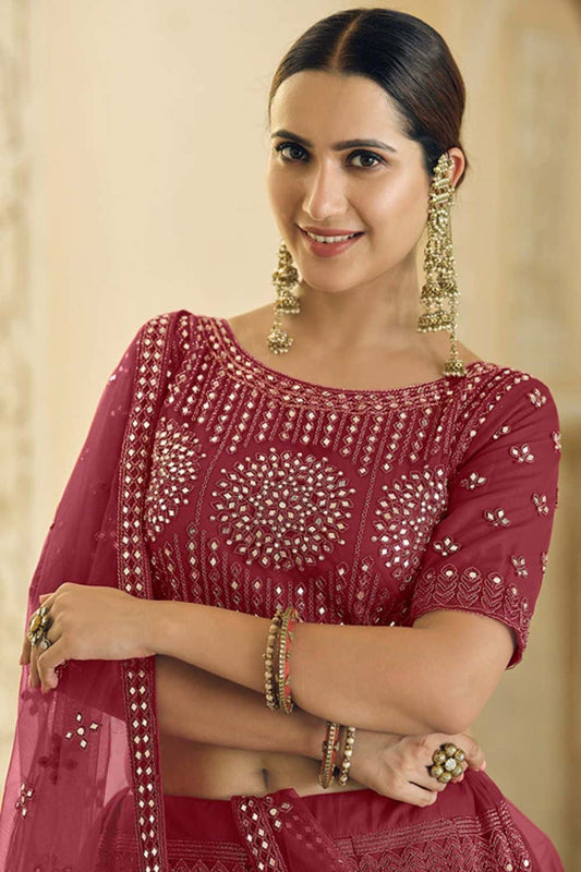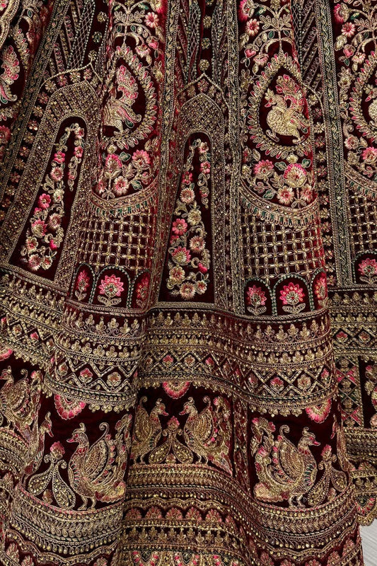 Regular price From £257.70 GBPRegular priceUnit price / per£294.02 GBPSale price From £257.70 GBP-12% OFFMaroon Timeless Bridal Lehenga In Net Lehenga Choli SFARY12102