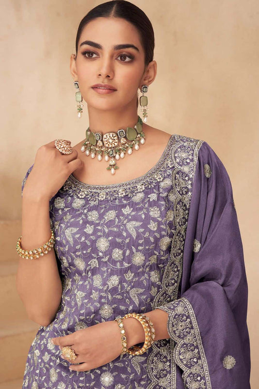 Regular price £102.52 GBPRegular priceUnit price / per£115.52 GBPSale price £102.52 GBP-11% OFFPurple Versatile Silk Salwar Kameez SFYS156302R