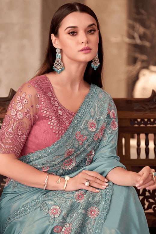 Regular price £150.77 GBPRegular priceUnit price / per£189.67 GBPSale price £150.77 GBP-20% OFFBlue Wedding Party Silk Saree Blouse SFSDR1905