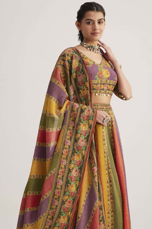 Regular price From £257.70 GBPRegular priceUnit price / per£316.29 GBPSale price From £257.70 GBP-18% OFFElite Yellow Bridal Sangeet Crepe Lehenga Choli SFARY11904
