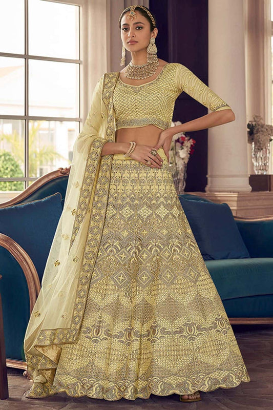 Regular price From £196.08 GBPRegular priceUnit price / per£232.57 GBPSale price From £196.08 GBP-15% OFFYellow Wedding Silk Lehenga Choli SFARY22201R