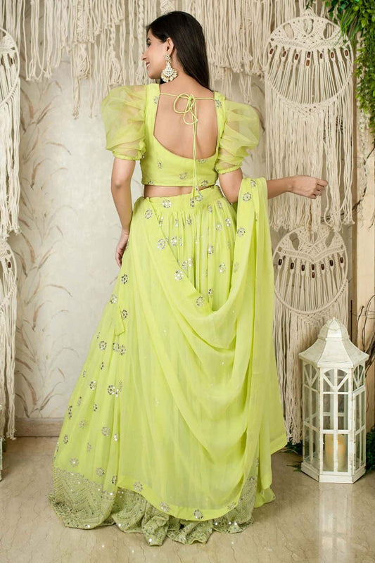 Regular price From £266.84 GBPRegular priceUnit price / per£303.51 GBPSale price From £266.84 GBP-12% OFFGreen Haldi Sangeet Georgette Lehenga Choli SFRELS3902