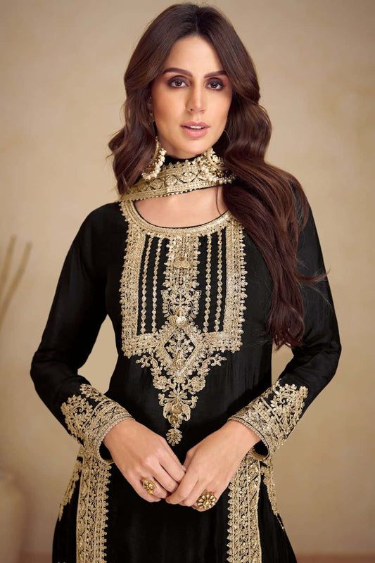 Regular price £135.81 GBPRegular priceUnit price / per£155.31 GBPSale price £135.81 GBP-12% OFFBlack Chinnon Embroidery Work Salwar Kameez SFSMT33901R