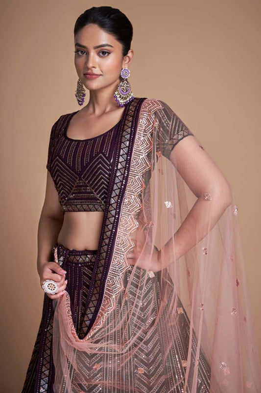Regular price From £142.82 GBPRegular priceUnit price / per£273.20 GBPSale price From £142.82 GBP-47% OFFBurgundy Georgette Engagement Lehenga Choli Sparkle Work SFARY18811