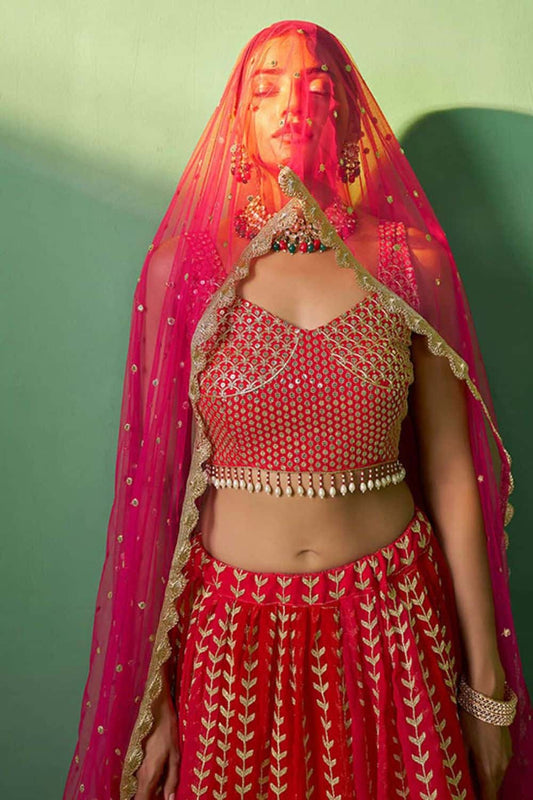 Regular price From £194.66 GBPRegular priceUnit price / per£222.47 GBPSale price From £194.66 GBP-12% OFFRed Bridal Wedding Georgette Lehenga Choli SFARY19101