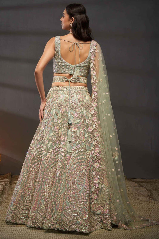 Regular price From £172.20 GBPRegular priceUnit price / per£215.37 GBPSale price From £172.20 GBP-20% OFFGreen Net Wedding Lehenga Choli Zarkan Work SFROY522434