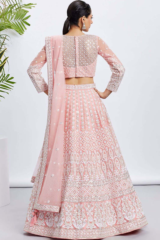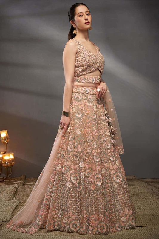 Regular price From £260.36 GBPRegular priceUnit price / per£273.18 GBPSale price From £260.36 GBP-4% OFFLuxe Peach Royal Bridal Wedding Net Lehenga Choli SFROY522438