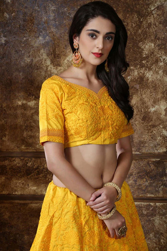 Regular price From £291.86 GBPRegular priceUnit price / per£334.07 GBPSale price From £291.86 GBP-12% OFFYellow Haldi Sangeet Wedding Silk Designer Lehenga SFKHU6105