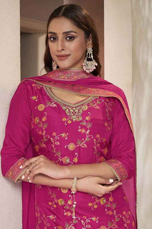 Regular price £223.70 GBPRegular priceUnit price / per£244.27 GBPSale price £223.70 GBP-8% OFFPink Sarara Kameez Readymade Salwar Kameez In Silk SFVNF1706R