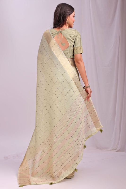 Regular price £86.00 GBPRegular priceUnit price / per£114.67 GBPSale price £86.00 GBP-25% OFFGreen Flattering Organza Sarees With Blouse SFAST11704