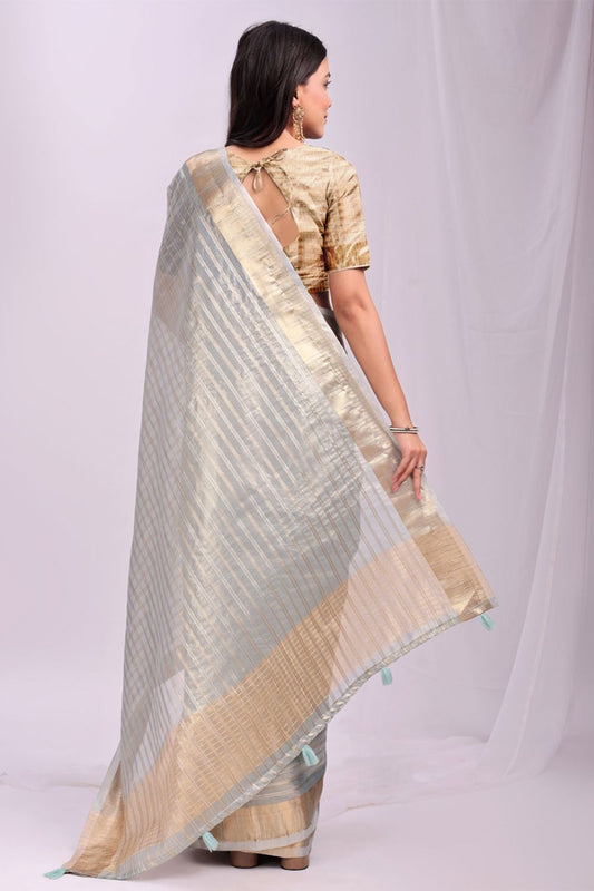 Regular price £86.00 GBPRegular priceUnit price / per£114.67 GBPSale price £86.00 GBP-25% OFFGrey Flattering Organza Sarees With Blouse SFAST11802