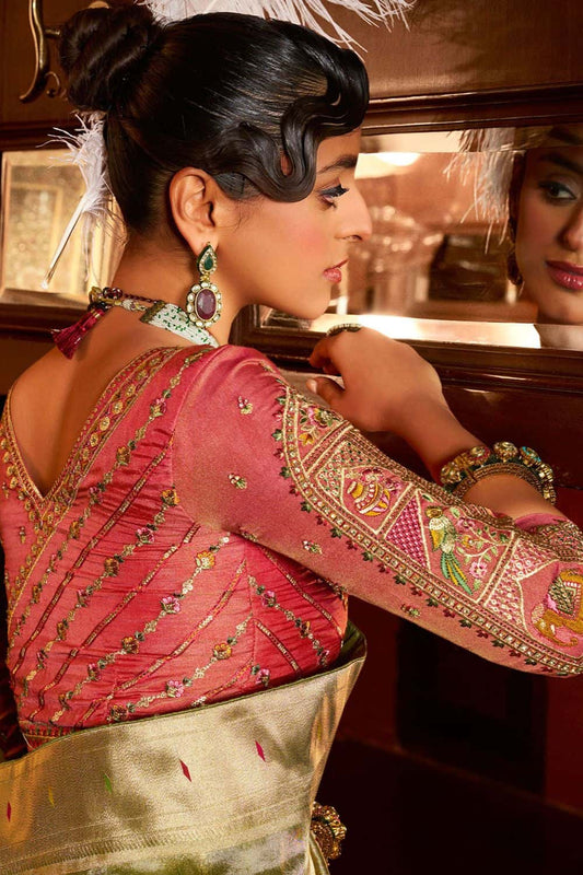 Regular price From £134.55 GBPRegular priceUnit price / per£167.05 GBPSale price From £134.55 GBP-19% OFFGreen Wedding Ceremonial Paithani Silk Sarees SFRELS5004