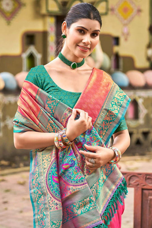 Regular price From £99.75 GBPRegular priceUnit price / per£155.65 GBPSale price From £99.75 GBP-35% OFFPink Wedding Ceremonial Paithani Silk Sarees SFRELS5001