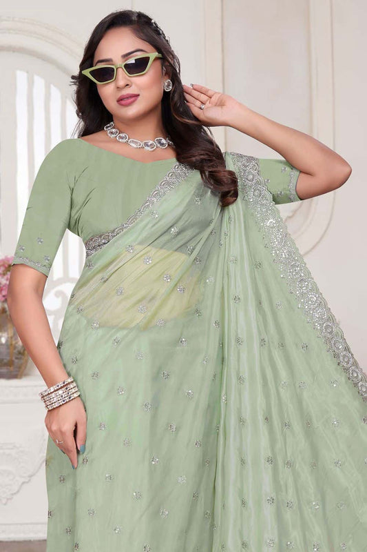 Green Wedding Reception Cocktail Silk Sarees SFNRF59005