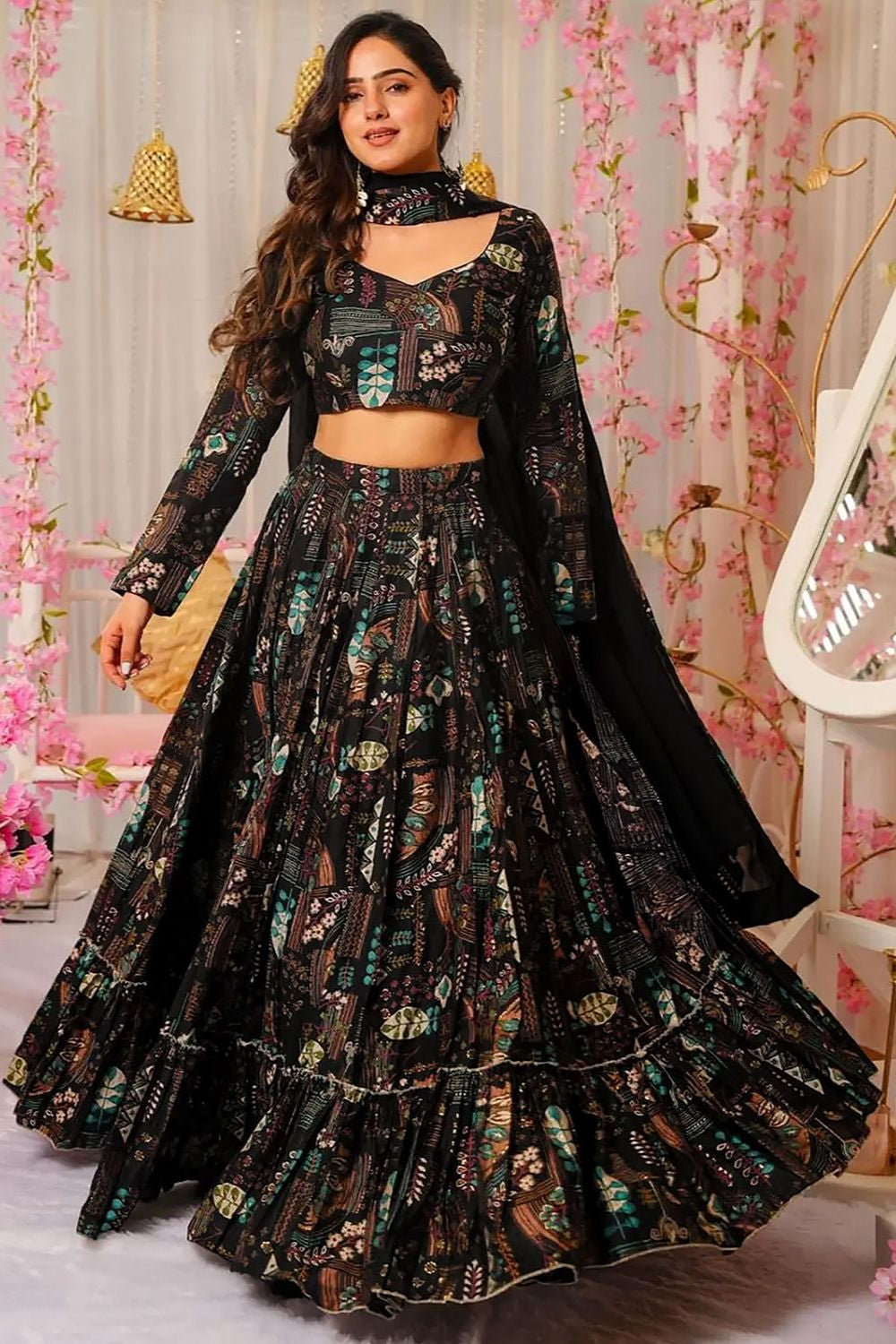 Black Printed Chinnon Lehenga Choli In Plus Size SFNPV65901R