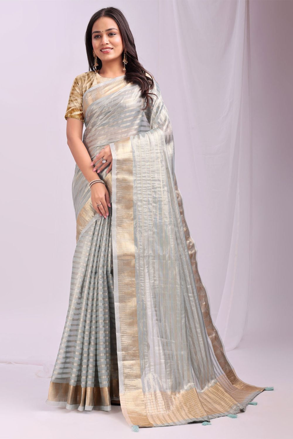 Blue Flattering Organza Sarees With Blouse SFAST11804