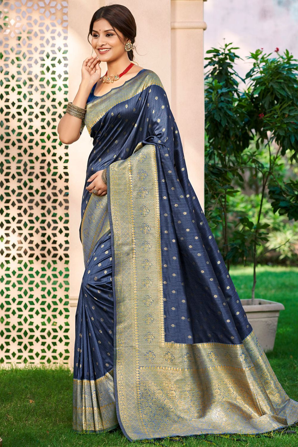 Blue Wedding Silk Saree With Blouse SFSGM118706