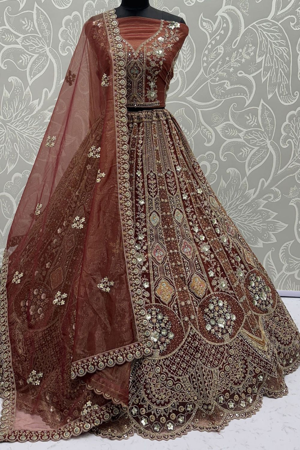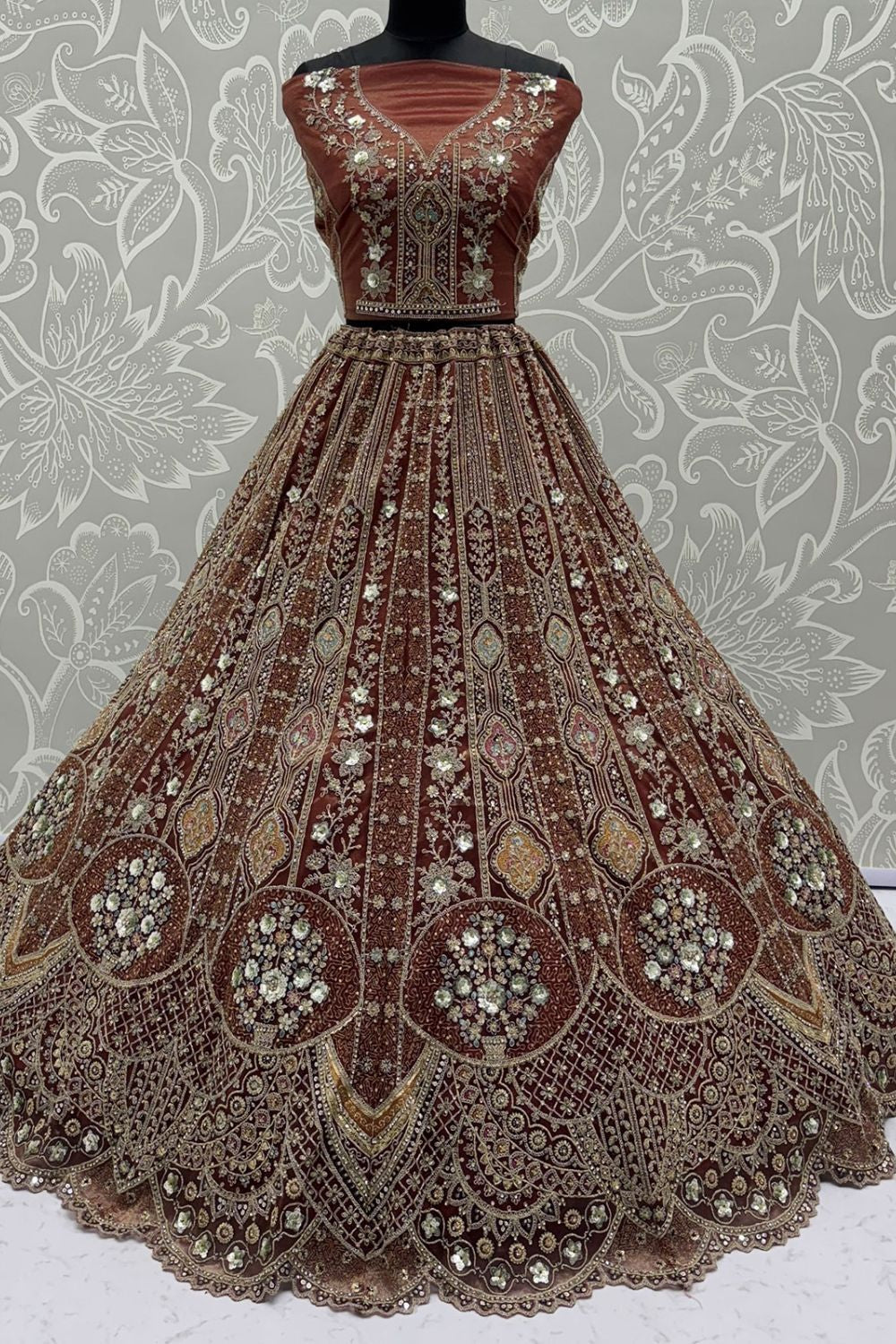 Brown Bridal Engagement Organza Lehenga Choli SFANJ3205