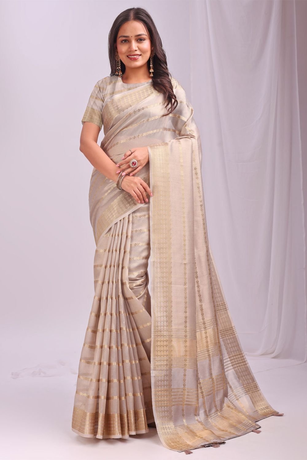 Cream Sleek Organza Casual Sarees With Blouse SFAST11506