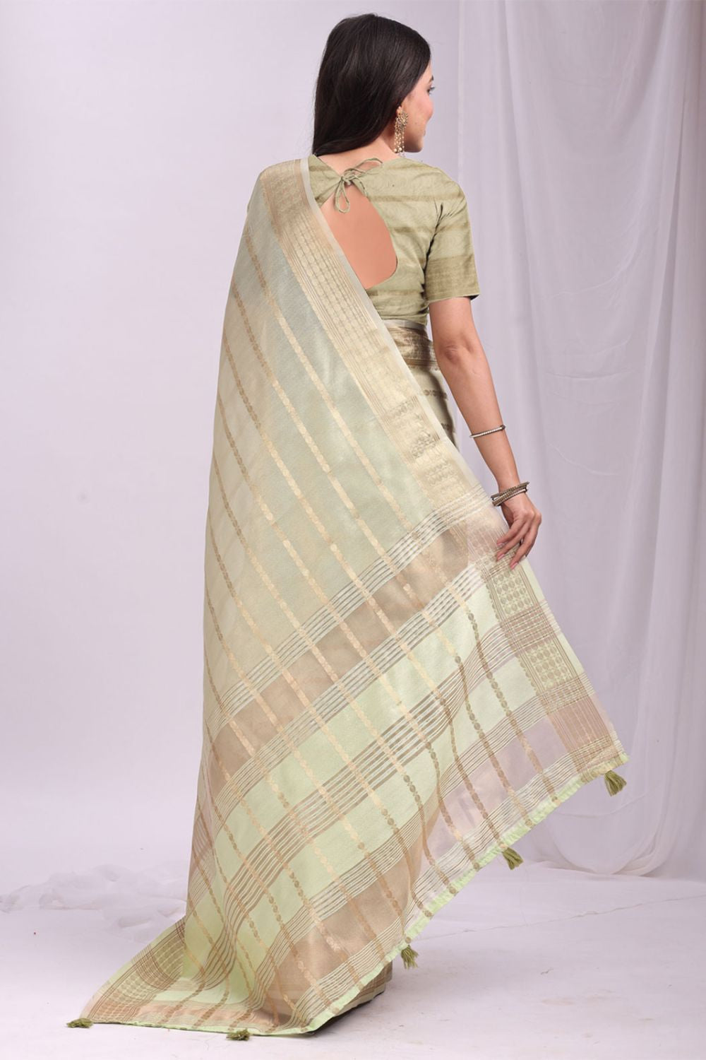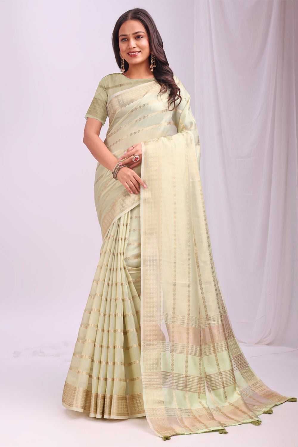 Green Sleek Organza Casual Sarees With Blouse SFAST11504